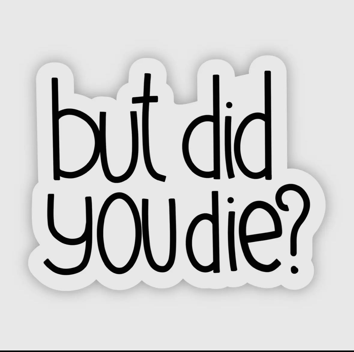 Whether you’re decorating your gear or giving it to a fellow adventurer, the "But Did You Die?" sticker is a statement that screams resilience and humor.
