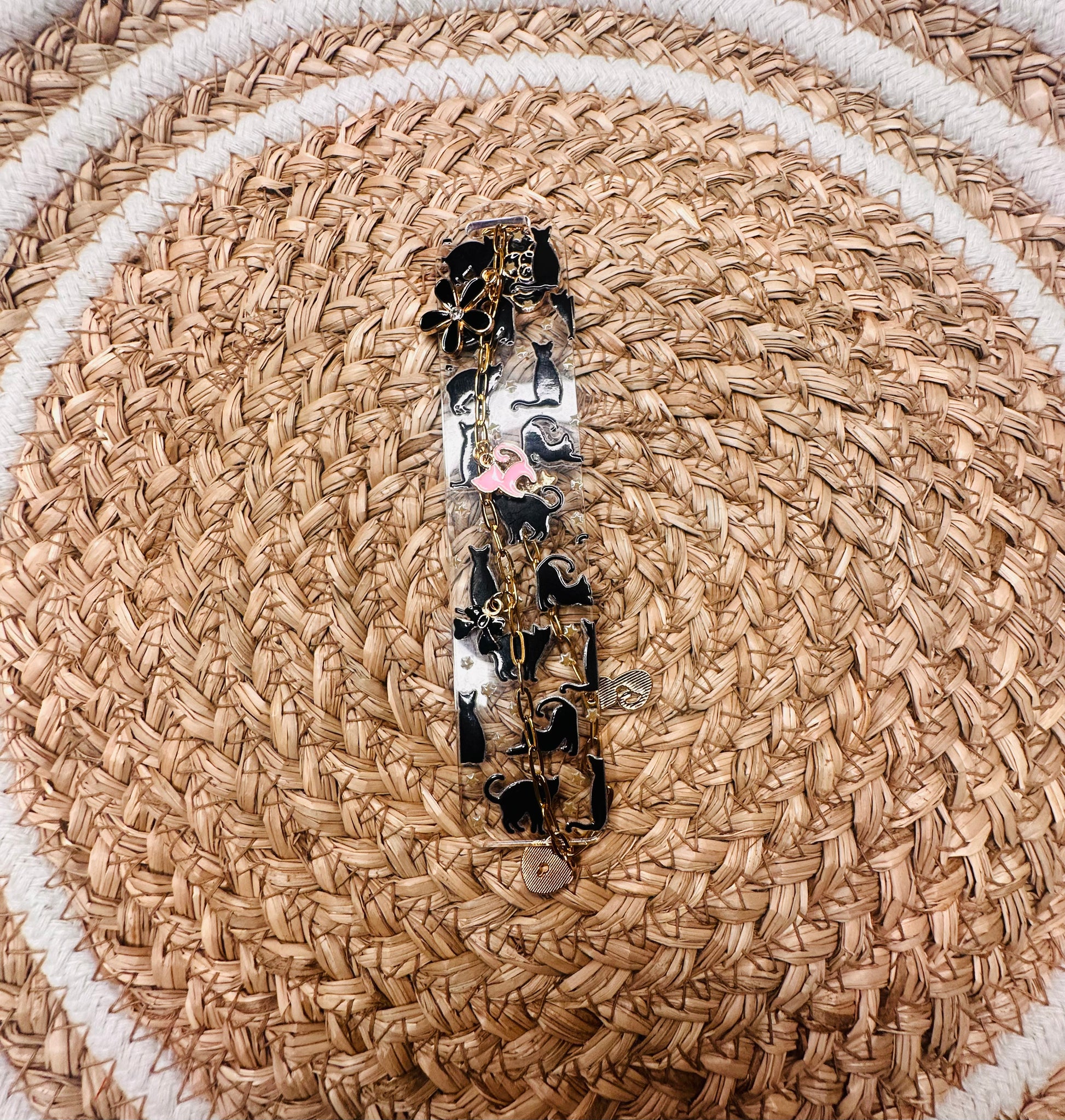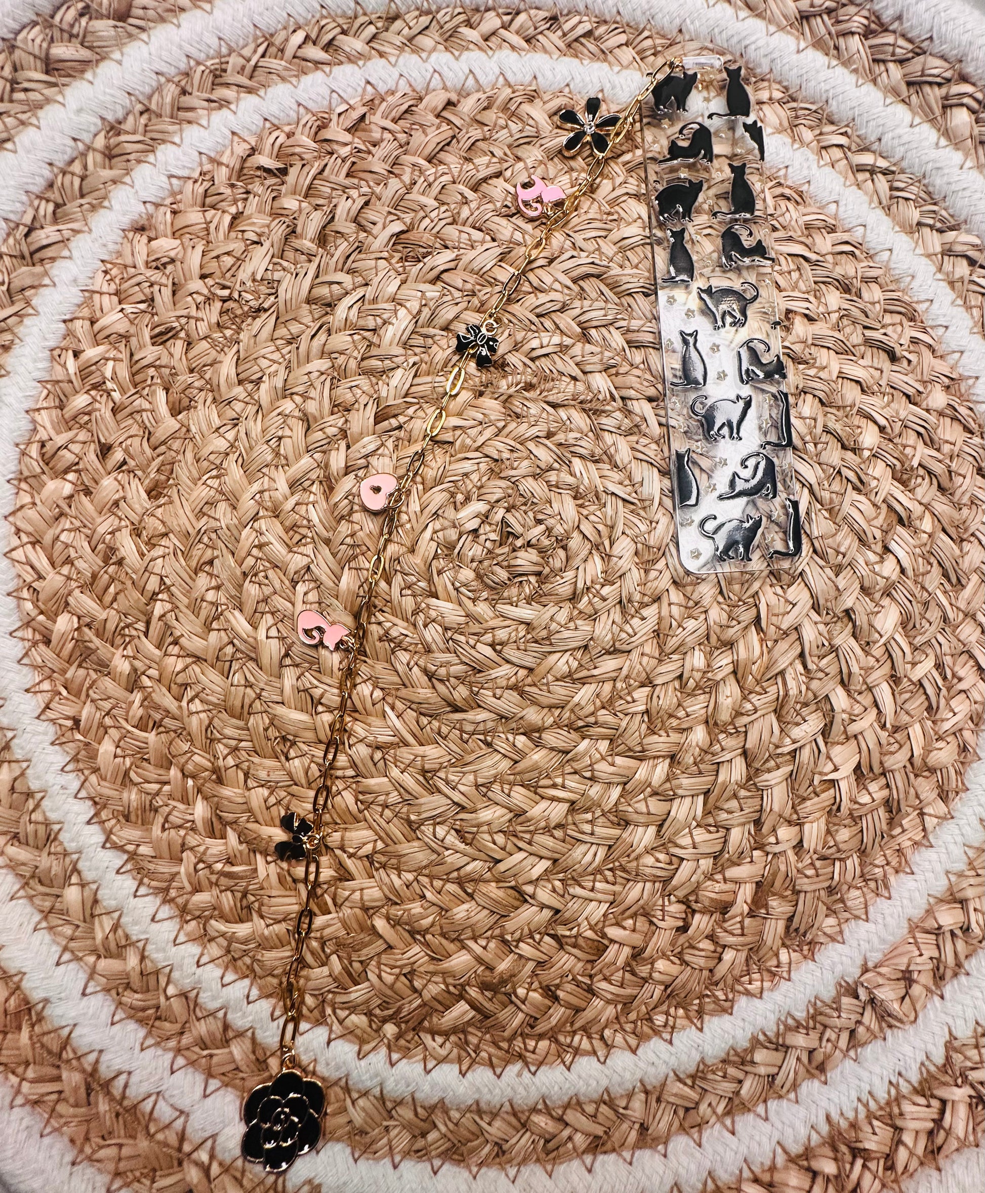 Add a touch of elegance and feline charm to your reading adventures with this Cat Bookmark with Gold Charms. Designed for cat lovers and bookworms alike, this bookmark combines practicality with a sophisticated aesthetic that will make every page feel more special.