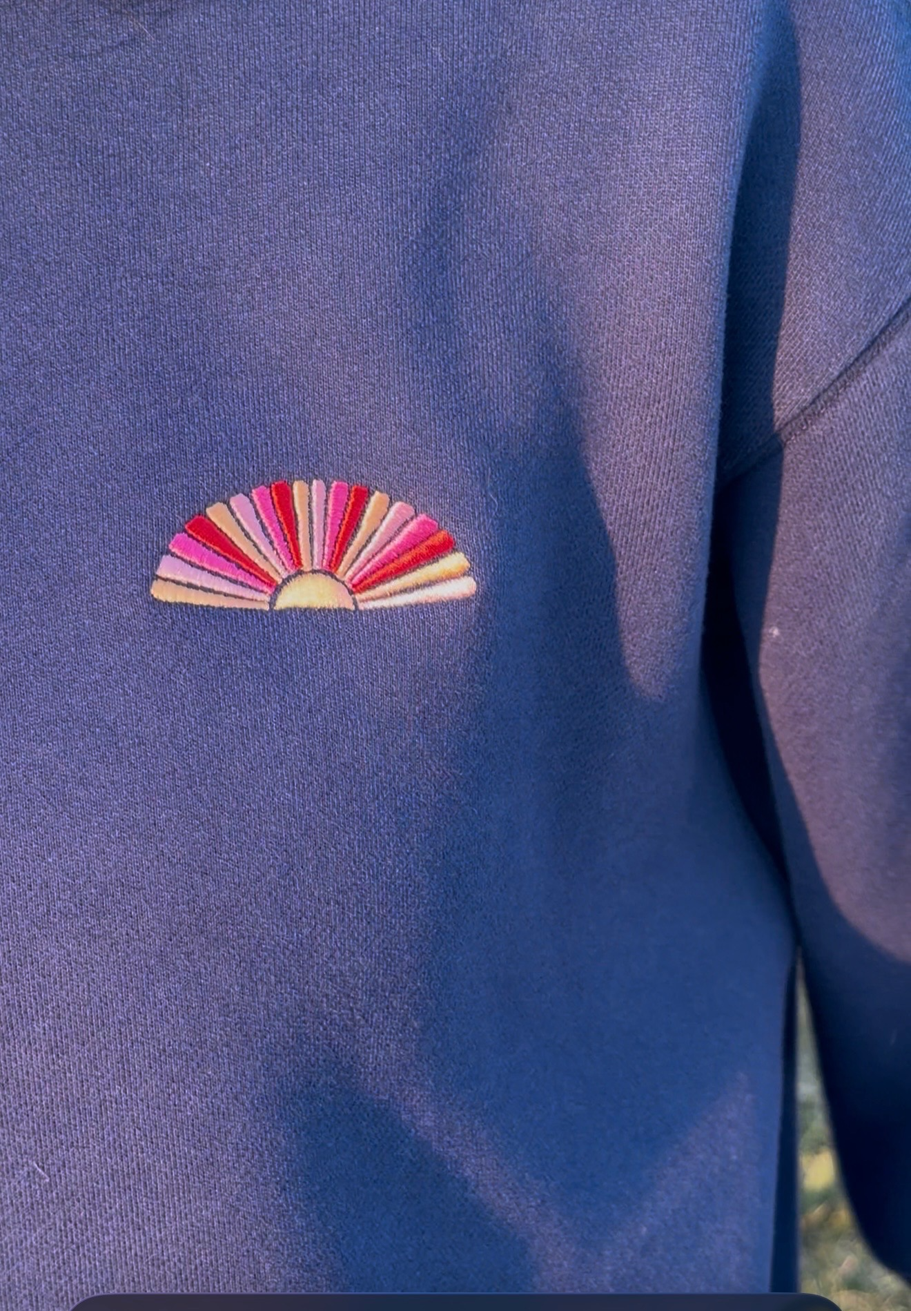 Built for comfort, inspired by adventure. The Midnight Blue Getaway Sweatshirt features a rich navy base and a vibrant illustrated back graphic that captures the spirit of exploration—from sunrise skies to winding forest paths. Crafted from soft, durable fabric with a relaxed fit, it’s designed to keep you warm on chilly days without sacrificing style. Perfect for everyday wear, weekend outings, or your next winter escape.