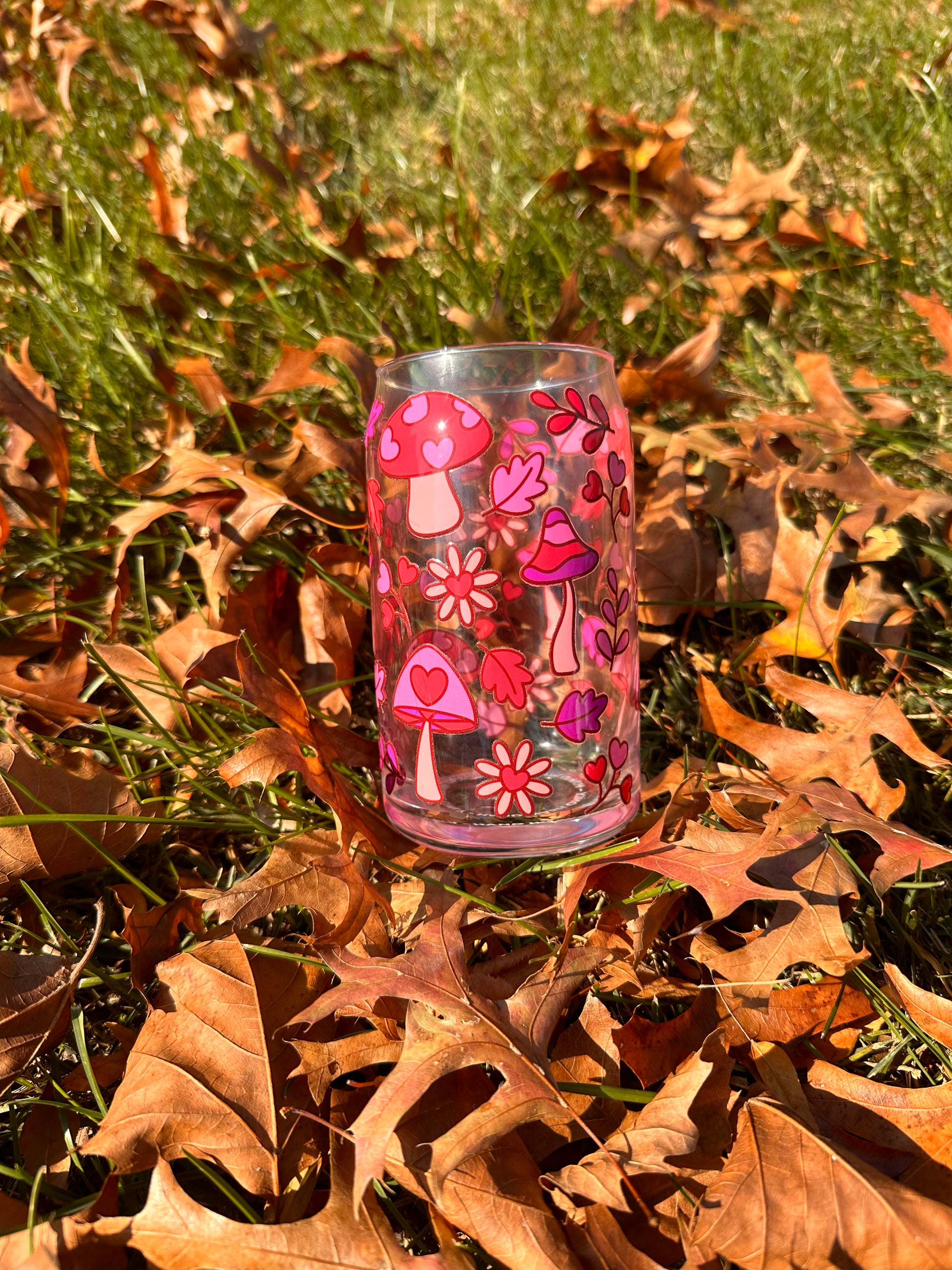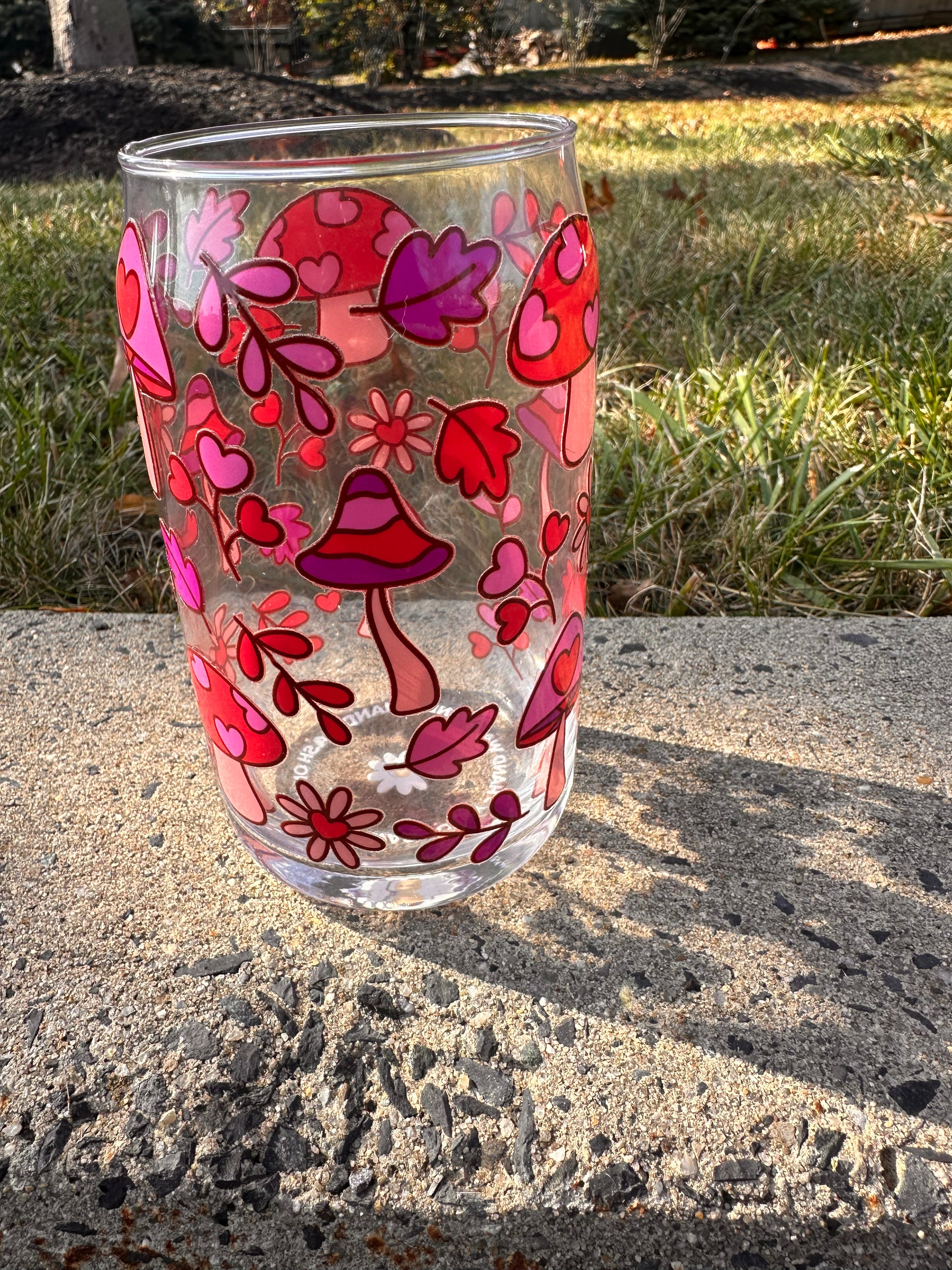 Pink Mushroom 16 oz Glass Cup
