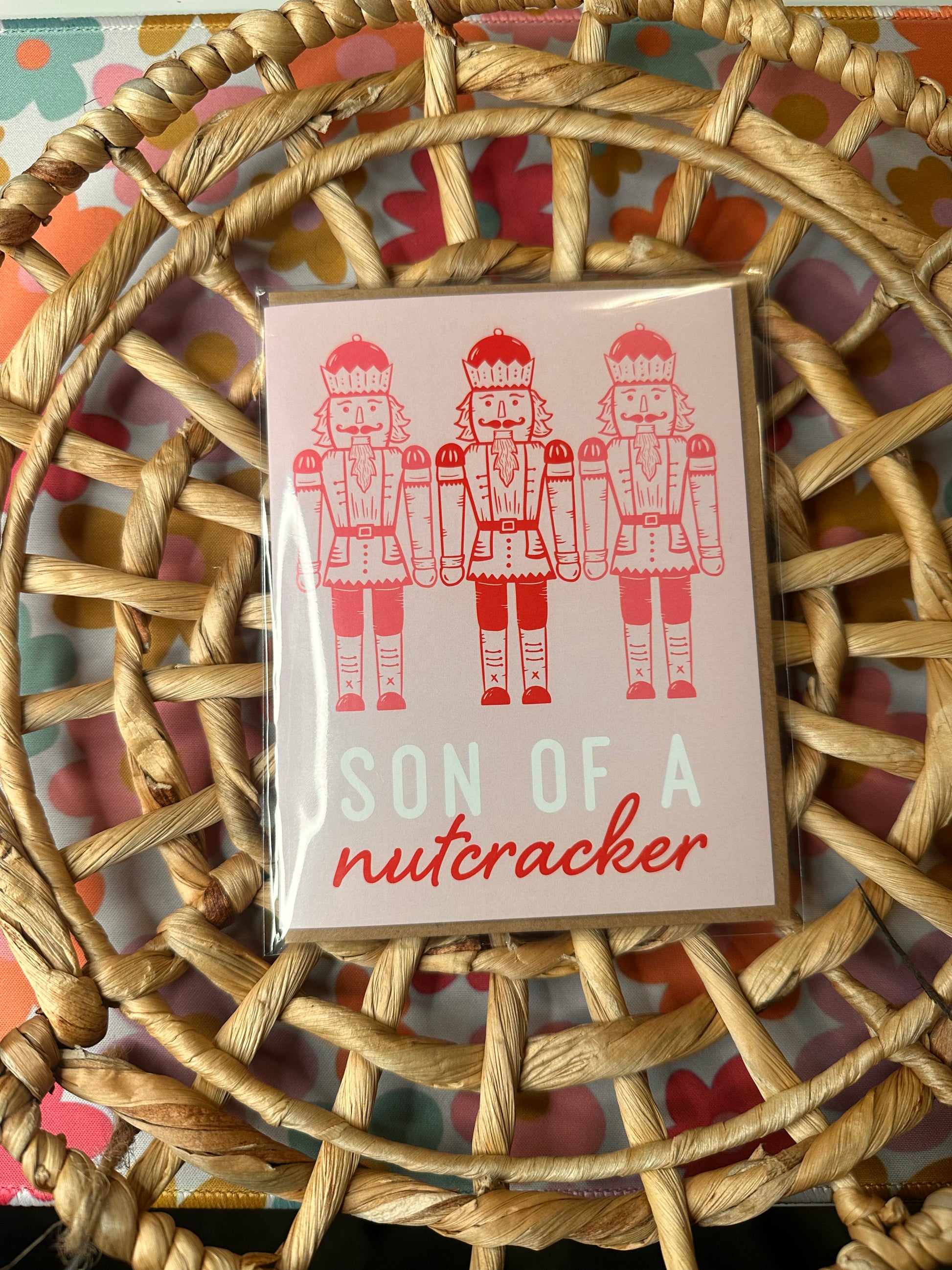 Spread festive laughs with our "Son of a Nutcracker" Greeting Card! This card is perfect for anyone who enjoys a playful twist on holiday classics. Featuring bold lettering and a whimsical holiday design, it’s a fun way to bring humor and joy to the season. Ideal for friends, family, or coworkers, this card is sure to bring a smile to their faces.